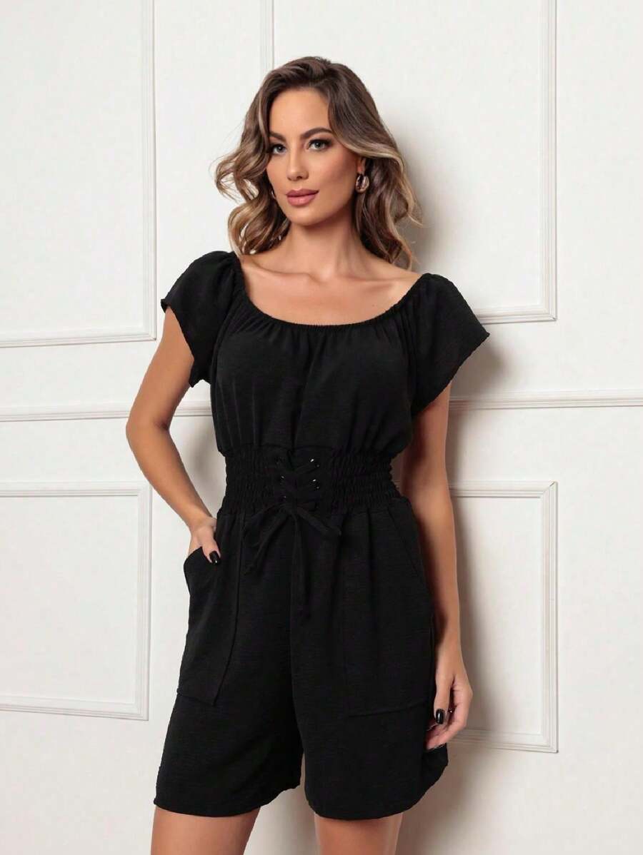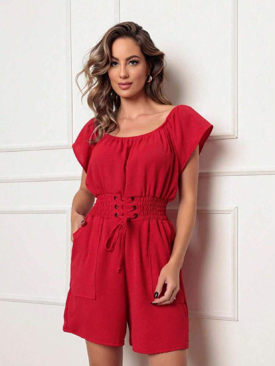 Macaquinho Feminino com Amarração e Elástico na Cintura Premium