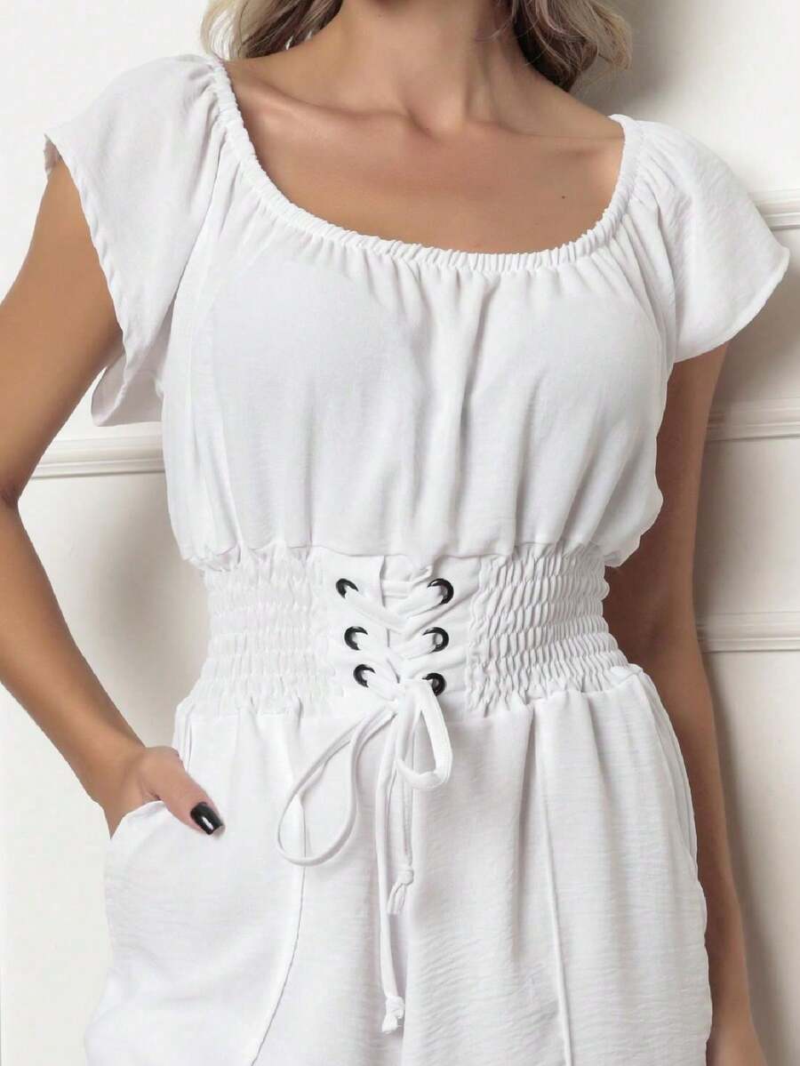 Macaquinho Feminino com Amarração e Elástico na Cintura Moda Verão Premium