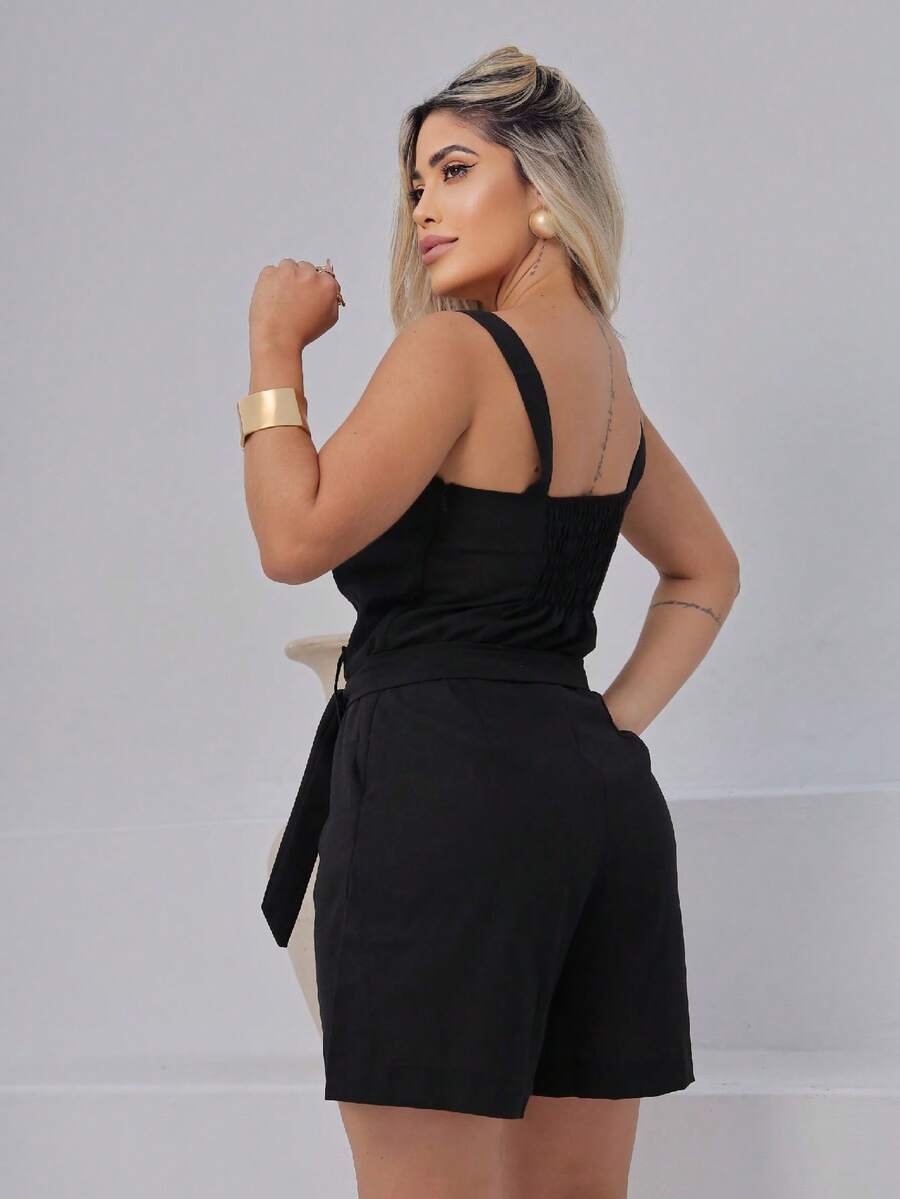 Macaquinho Feminino Giovana em Linho com Cinto e Bolsos – Elegante e Atemporal