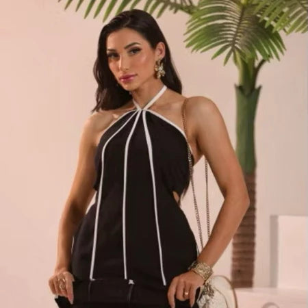 O Macaquinho Feminino Listrado é um lançamento que traduz as principais tendências da moda verão 2026. Com design moderno, recortes laterais e bojo elegante, a peça valoriza a silhueta com sensualidade e sofisticação. Seu caimento solto e a amarração no pescoço garantem conforto e ajuste perfeito ao corpo.