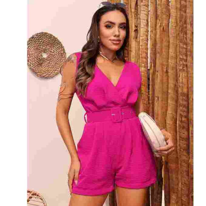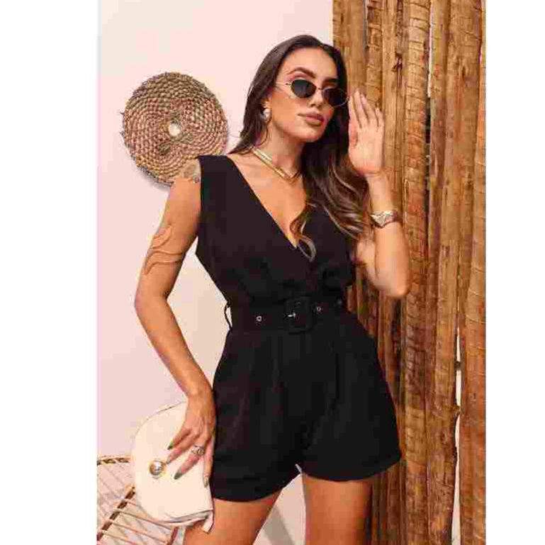 Macaquinho Feminino Soltinho com Cinto – Alfaiataria Duna com Decote em V