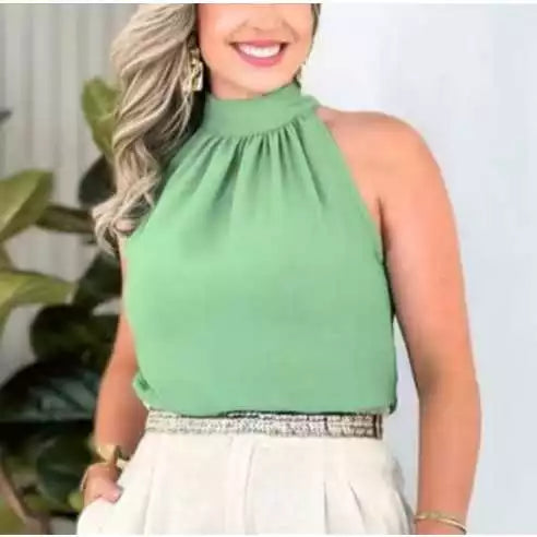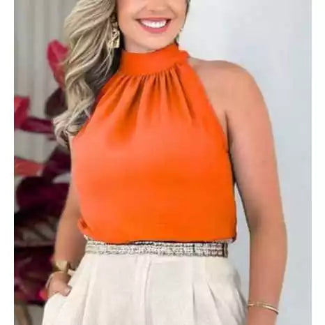 Regata Feminina Gola Alta com Amarração nas Costas – Elegância e Conforto
