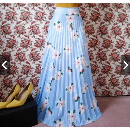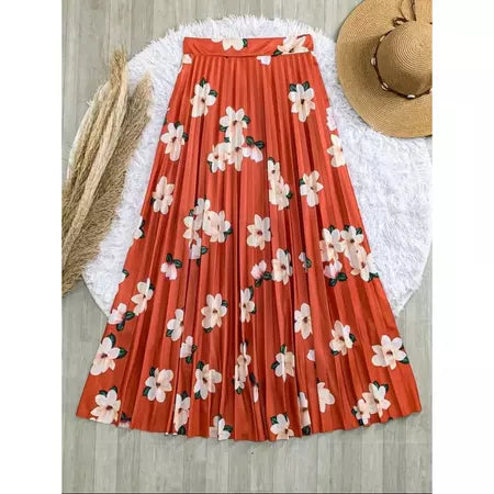 Saia Plissada Longa Elegante Cintura Alta