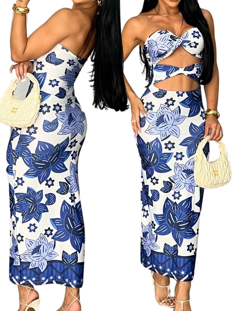 Vestido Midi Feminino Floral Azul com Bojo – Estampa Digital | Moda Verão 2025