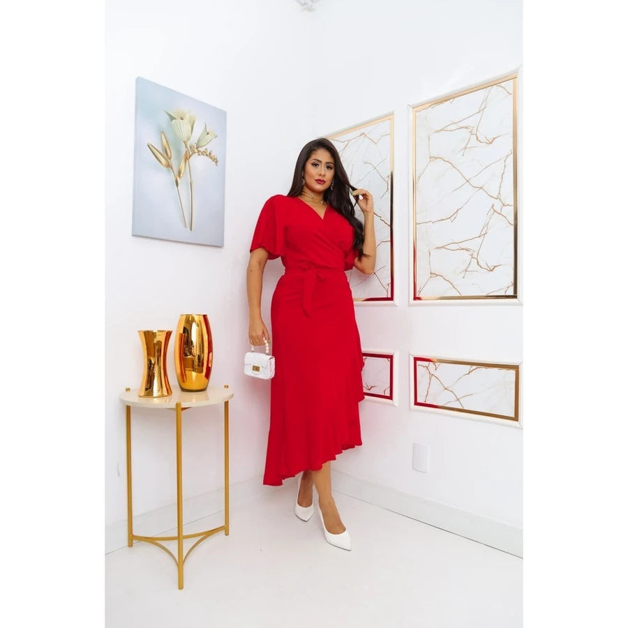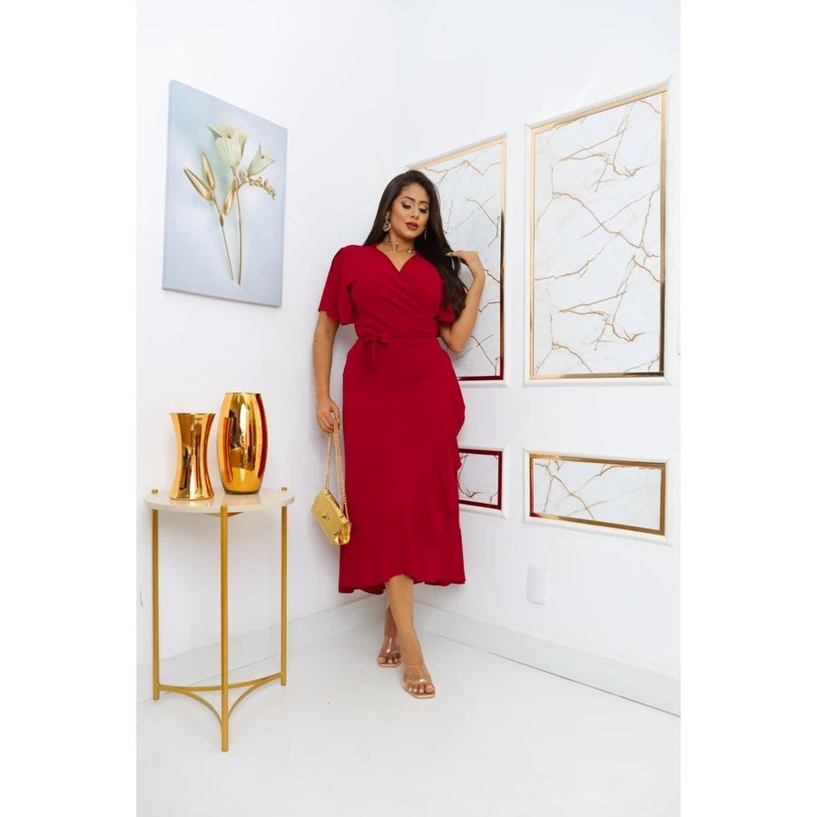 VESTIDO ENVELOPE LONGO VISCOLINHO LISO MANGA CURTO